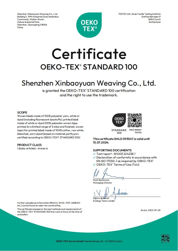 We have 2 factories in China. The controlling company Shenzhen Xinbaoyuan Weaving Co., ltd. is in Shenzhen, Guangdong Province, covering 5,100 square meters. The branch factory is in Quanzhou, Fujian Province, covering 9,600 square meters. We produce more than 1 billion pieces of sticker patches every year, and 100 million pieces of woven patches and embroidery patches per year.